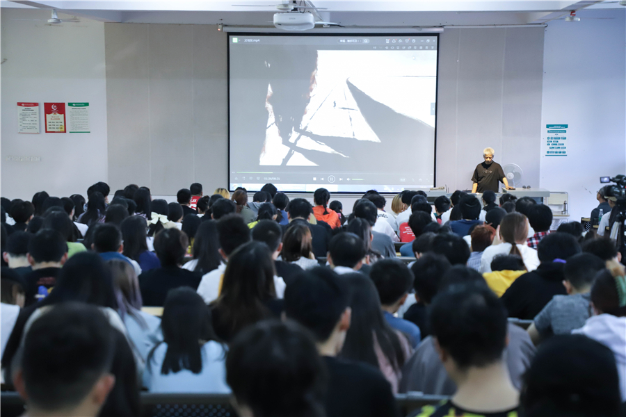 黄教授表示光影能很好的体现画面氛围。随后黄惠忠教授通过解析《蝶》和《战士》两部短片,对想要以绘本的形式进行毕设的同学提出了几点建议,可以借鉴传统的中国画、壁画、汉砖画及皮影等艺术形式,以及欧美黄金时代的插画和浮世绘,同时配合艺术性的美术训练,将平时的灵感及时记录下来,为毕设做好准备。现场同学倍感受益匪浅。