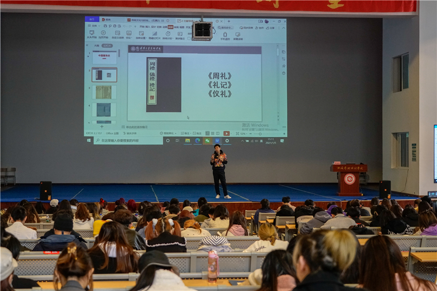 2021年1月5日至8日于我校西区大礼堂,清华大学美术学院教授贾玺增莅临我校带来题为《中国服装史》的系列讲座。本次讲座共有八场,吸引众多师生前往聆听,讲座由服装学院常务副院长孙竹青主持。