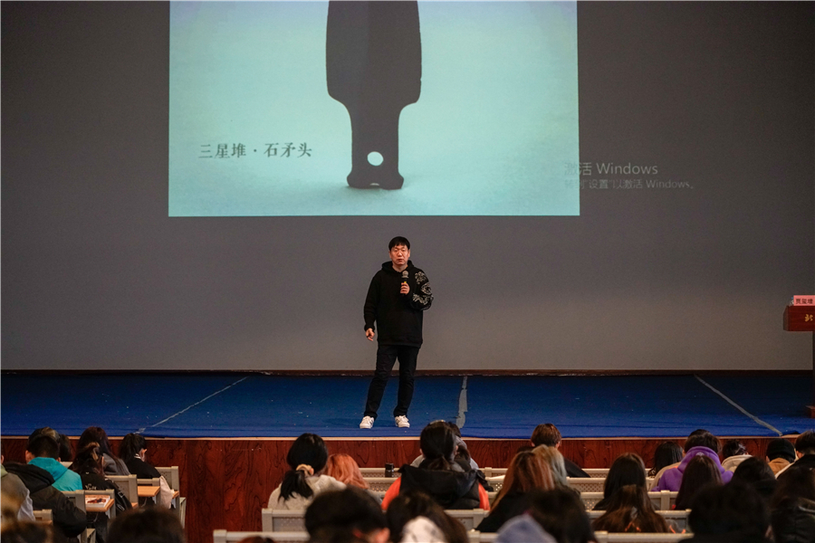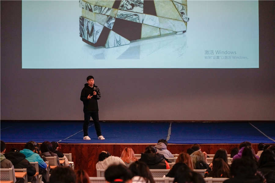 随后,他以石器时代的石头器物和彩陶石器的纹样为灵感,通过案例讲述了现代服装设计中对于石器和彩陶的设计应用,使同学们耳目一新,认识到学习传统的重要性。历史中众多优美的东西,是我们构建审美重要的部分,希望同学们可以从历史学习古人的智慧和审美逻辑,为服装设计带去新的涵养。