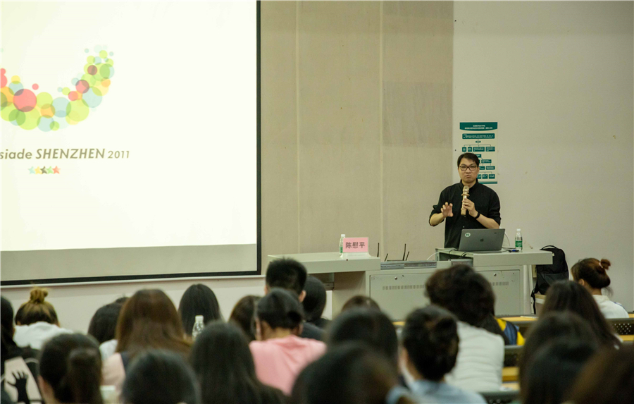 讲座最后,陈教授提到了国内外设计环境的区别,十年前中国网络并不发达,国内很多设计师很少看到国际上的作品,但随着经济水平发展和网络的普及便捷,设计师们可以更快了解国内外动态,国内外设计的区别逐渐减小,国内设计环境越来越好,有利于国内设计行业的发展,希望同学们具备更广阔的视野,打好基础,创造出更多的优秀作品。