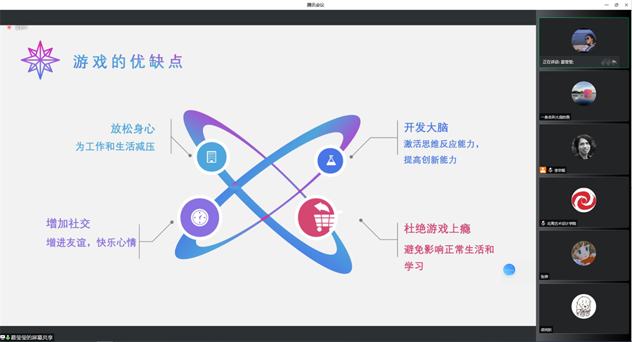 葛莹莹教授在分享游戏行业的就业前时,进一步强调了游戏专业的教育需要打通技术与艺术的通道。葛莹莹教授运用自身丰富的游戏专业理论知识与游戏实践能力,耐心解答了大家提出的问题,令参与讲座的广大师生受益匪浅。