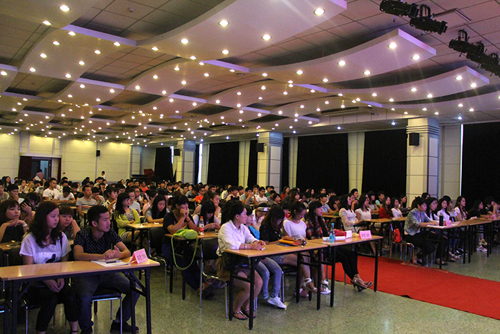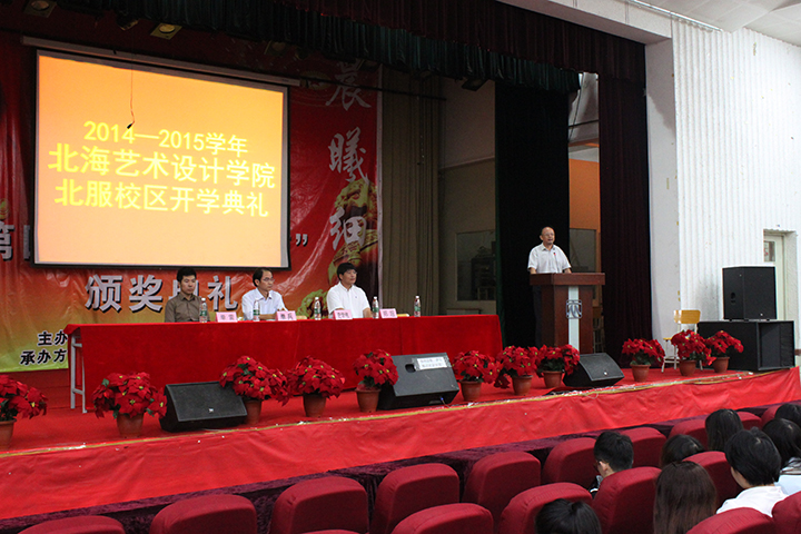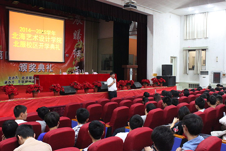 在这层林尽染,硕果累累的金秋九月,我们于2014年9月15日上午9时许,在北京服装学院北校区大礼堂隆重举行北海艺术设计学院北服校区2014-2015学年开学典礼。会议由徐佳老师主持,出席此次会议的领导有,北京服装学院北校区单兵主任,北京服装学院继续教育学院史学伟院长,北海艺术设计学院郑超副院长,幸星教育科技有限公司教学部总监单雷老师。参加开学典礼的学生有环艺、服装、动漫、产品等四个专业,共计300余名学生。会议在庄严肃穆的国歌中正式开始。