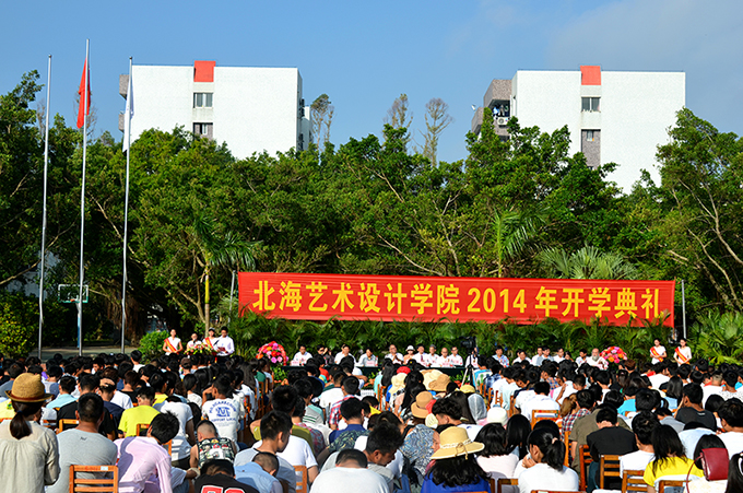 2014年9月16日上午,北海艺术设计学院彩旗飘飘、鲜花怒放,学院举行2014—2015学年开学典礼。