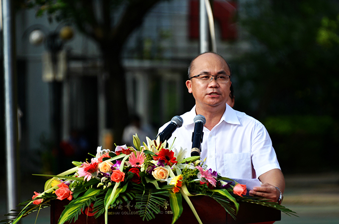 王国伦院长在典礼的讲话中,特别强调学院已经成为北海市第一所独立设置的二本院校,简介学院历史与成就,光荣与梦想。要求学院始终坚持“德为魂、艺求神”的办学理念,把“道 德”作为校训和学院的核心价值观,希望同学们做有道德、有精神、有智慧的新青年;做自觉思考、分析和探求真理的人。