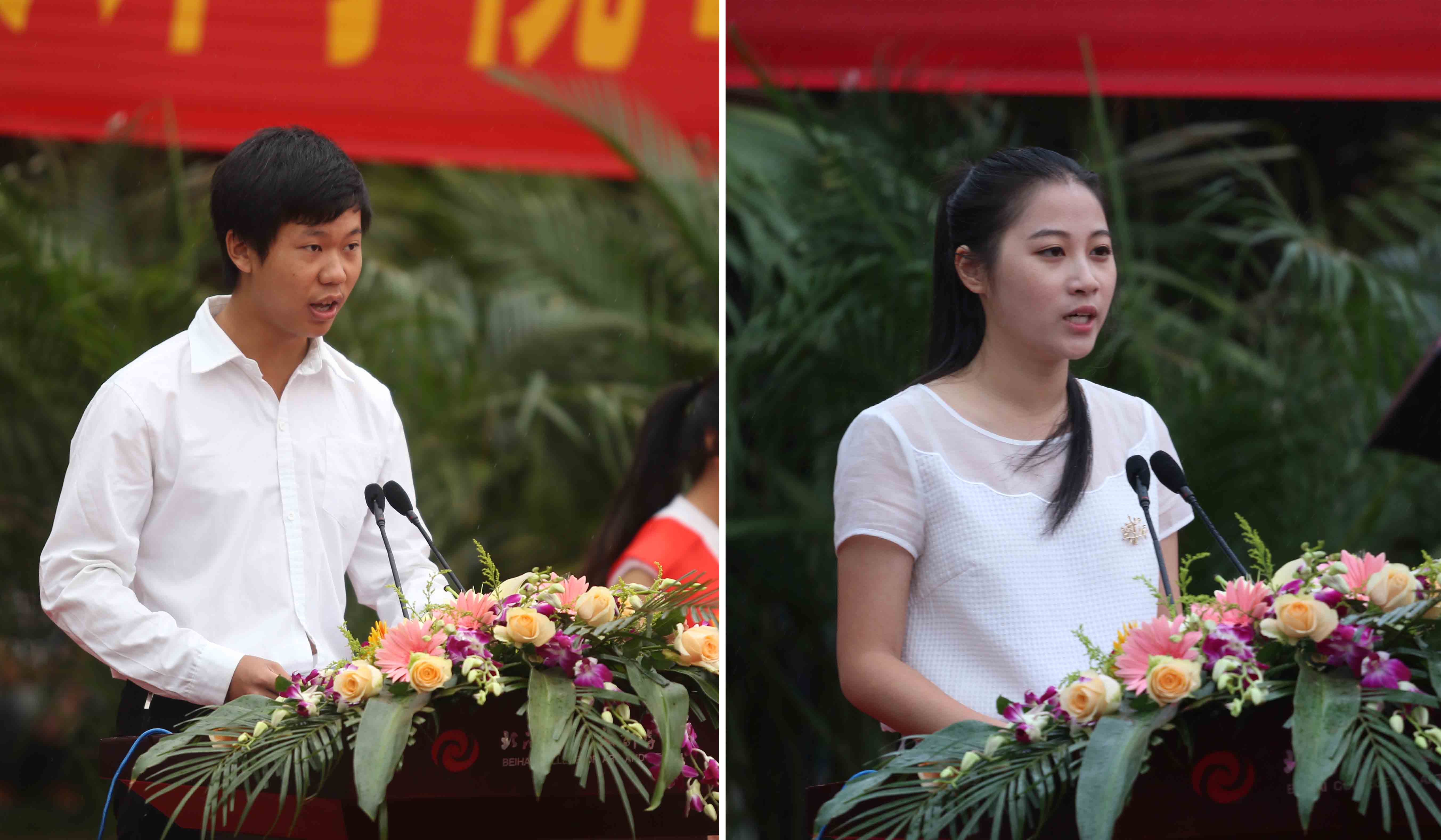 2014级学生周真安代表老生发言:作为学姐,她从大学学习和生活的诸多方面给学弟学妹们介绍经验、提出建议,并和他们共同畅谈梦想。她说,北艺让同学们度过了人生中最绚烂、最难忘的时光,经过时间的见证,北艺将是他们无悔的选择。动画学院党总支书记、常务副院长陶立阳老师代表全院教师发言,愿全院师生勤奋钻研、勇攀高峰、发挥才能、珍惜时代机遇。