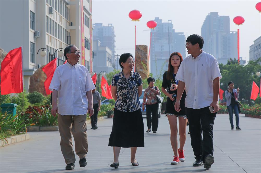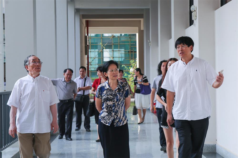 图为自治区高校工委副书记秦敬德(右二)率考察组一行到我院考察指导