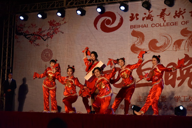 舞蹈《好运来》拉开了晚会的帷幕。整场晚会流行与古典兼收,温情与火热并举,形式多样,精彩纷呈。《double a》《茉莉花》《红是红啊绿是绿》等舞蹈轮番登场,或活泼动感,或浪漫温馨,或轻快悠扬,风格各异,变幻多姿。歌舞剧《北艺馒头奇缘》,歌曲《喜欢你》,乐队演唱《超级英雄》《我有一把尤克里里》,民乐合奏《山丹丹开花红艳艳》展示了我校同学的多才多艺,街舞《it is hip hop》、歌曲串烧《玫瑰》《最美的太阳》以及合唱《在灿烂的阳光下》模特走秀等节目无一不在展现我校的精神风貌。