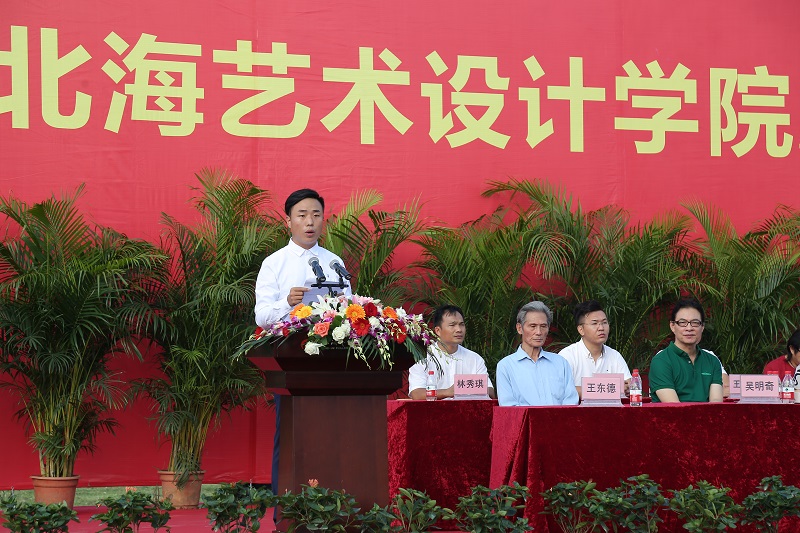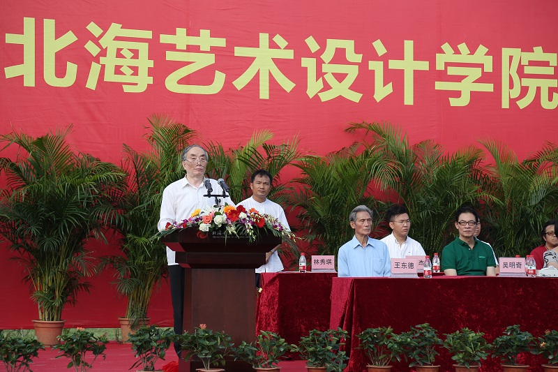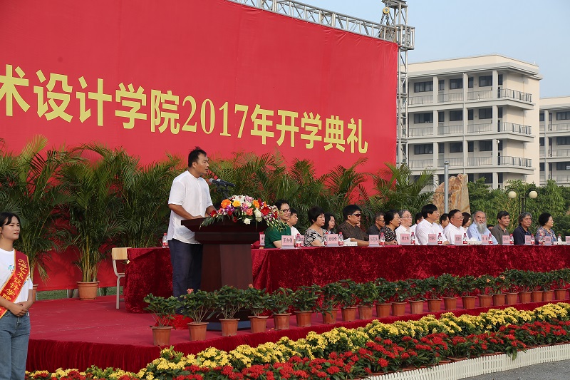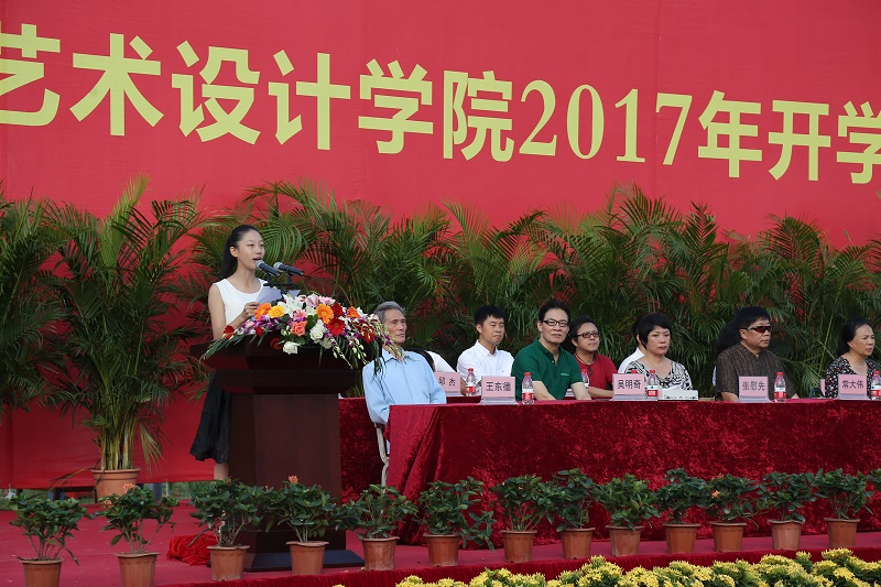 王国伦院长在典礼上致辞。王院长表示,学校办学18年来,在秉承北京著名艺术高校培养模式的同时,融合北部湾海洋文化特质,形成了自身独有的办学特色和育人氛围。在“道 德”校训和“德为魂、艺求神”大学精神的熏陶下,一批又一批的北艺人在这里学习成长,并从这里走向广阔天地。王国伦院长对2017级新生提出新的期望:从习惯被安排到学会主动担当,从被动学习到自主探究,从跟随别人到独立思考,注重开阔视野、健全人格的培育。希望广大师生积极参与学校建设发展,努力迈向世界知名大学的行列。