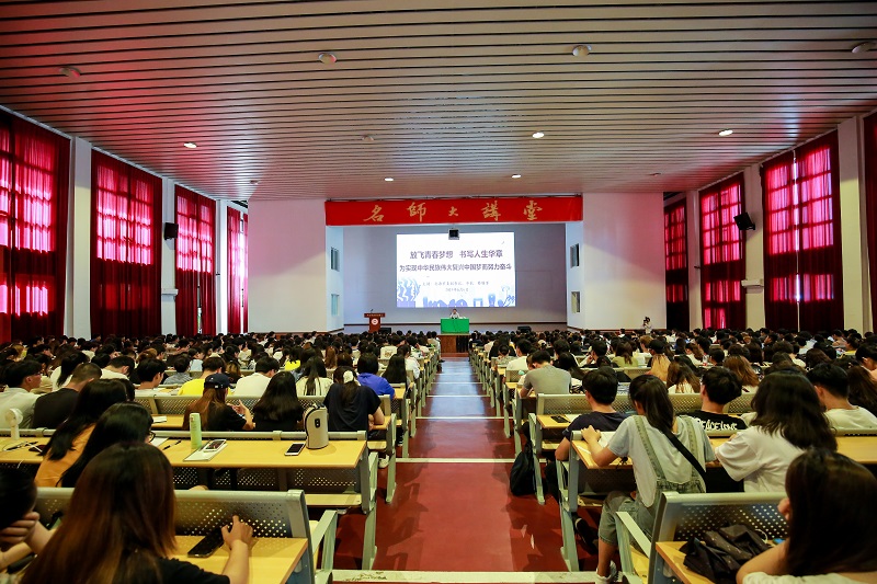 蔡锦军市长以《放飞青春梦想 书写人生华章——为实现中华民族伟大复兴中国梦而努力奋斗》为题,结合个人成长经历和工作阅历,从爱国、自信、修德、勤奋、勤学、奉献等六个方面,引经据典,纵论古今,阐述了新时代有为青年成长成才的要义。第一,面对复杂多变的国际局势,青年必须要有一颗坚定的爱国之心、为国服务之志;第二,自信是事业成功的基石,在学习工作中必须树立自信心,通过在不断的实践积累经验,提高自身能力;第三,德为才之帅,才为德之资,修德是立世的根本,要不断加强个人品德修养,在为人处世中修炼大格局、大智慧;第四,勤奋是成功的关键,要学习古人深夜苦读的勤奋精神,凡事下一番苦功夫刻苦钻研;第五勤学是成功的前提,要养成学习、思考的好习惯,读好书多读书,以此不断提高个人的综合素质、精神境界;第六,奉献就是一种不求回报的给予,既是一种高尚的情操、崇高的境界,也是一种平凡的精神,青年学生必须要有为国奉献、为中华民族复兴奋斗的精神。随后,蔡市长向广大师生介绍了目前北海市社会经济发展取得的成就,以及未来北海市在生态环境、医疗卫生、教育方面的发展目标前景,希望在北海市政府的努力下,塑造崭新的城市形象,让人民生活充满幸福感。